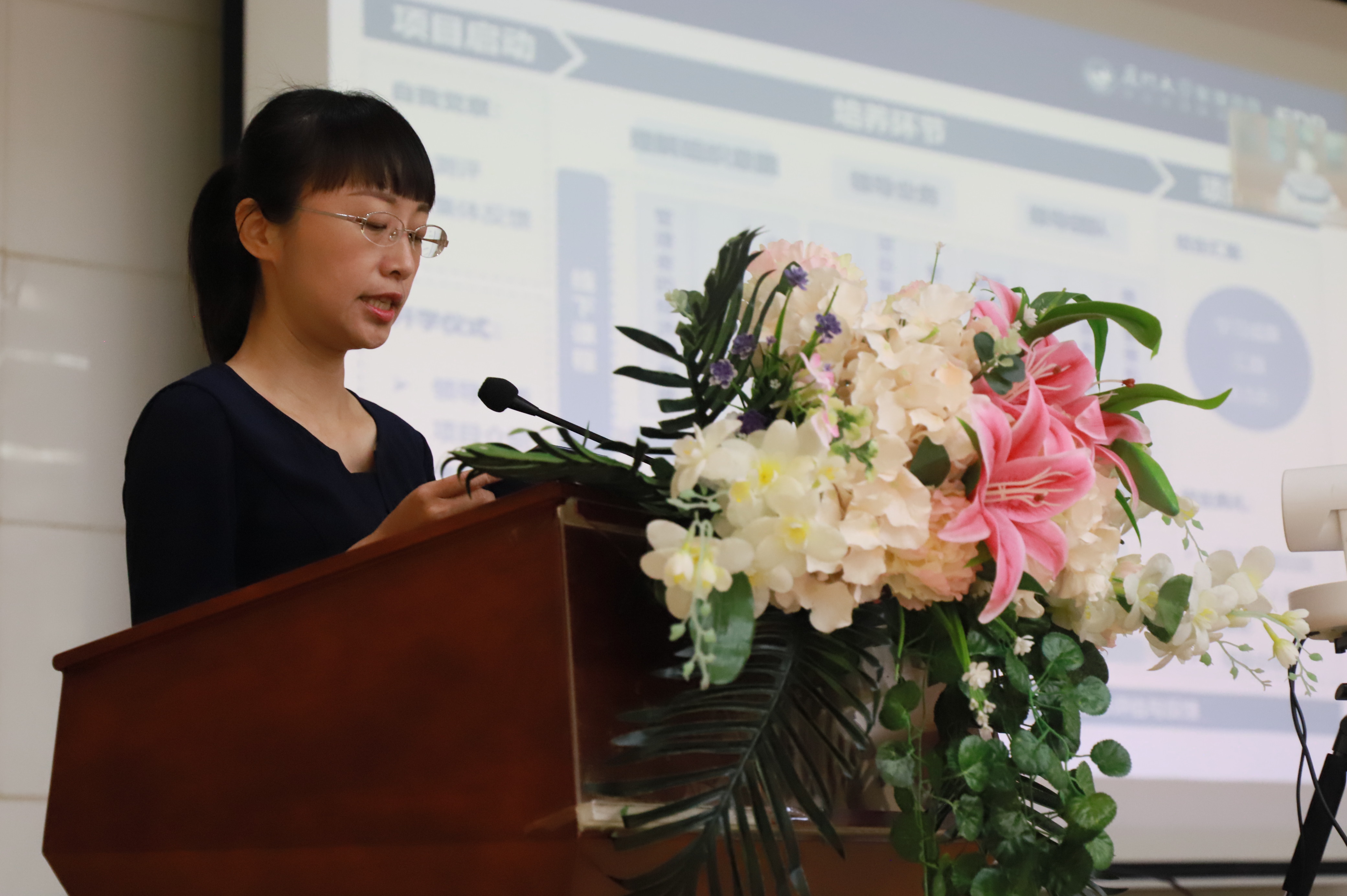 项目主管洪丽君老师就培训的项目内容做简单介绍。本次培养方案从中层管理者的角色定位和面临的挑战出发,基于成人学习特点,设计培养方案。课程学习以商学院经典课程为依托,汇集国内商学院和知名管理咨询公司的师资力量;穿插“评估认知”和“赋能成长”等学习活动,以有效达成培养目标,从而帮助企业中层管理团队建立系统的商业认知框架,实现认知和思维模式的突破。