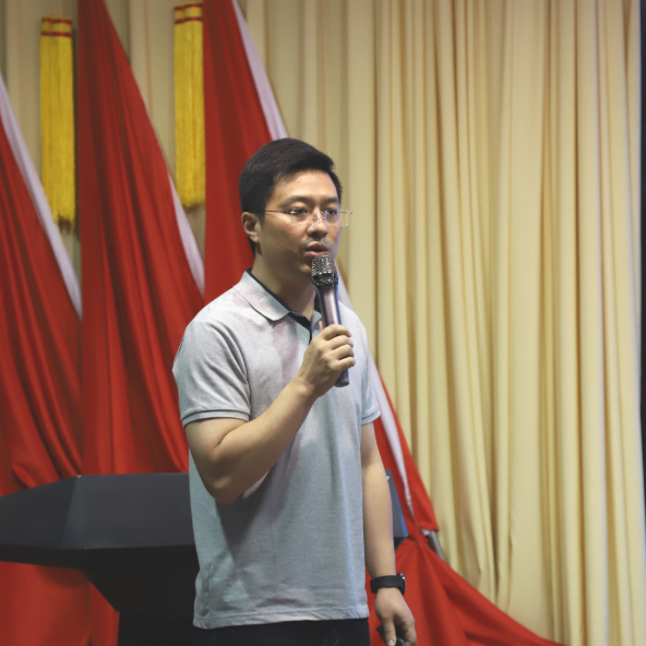 王锡斌同学代表优秀学员发表学习感言,他首先感谢公司提供的学习机会,并表示在这一年的学习中,大家不仅系统掌握了管理理论,也提升了团队协作能力和分析问题、解决问题的能力。倡导大家毕业不停学,继续将所学和个人的知识及经验进行融合,引领团队为企业的发展注入新活力。