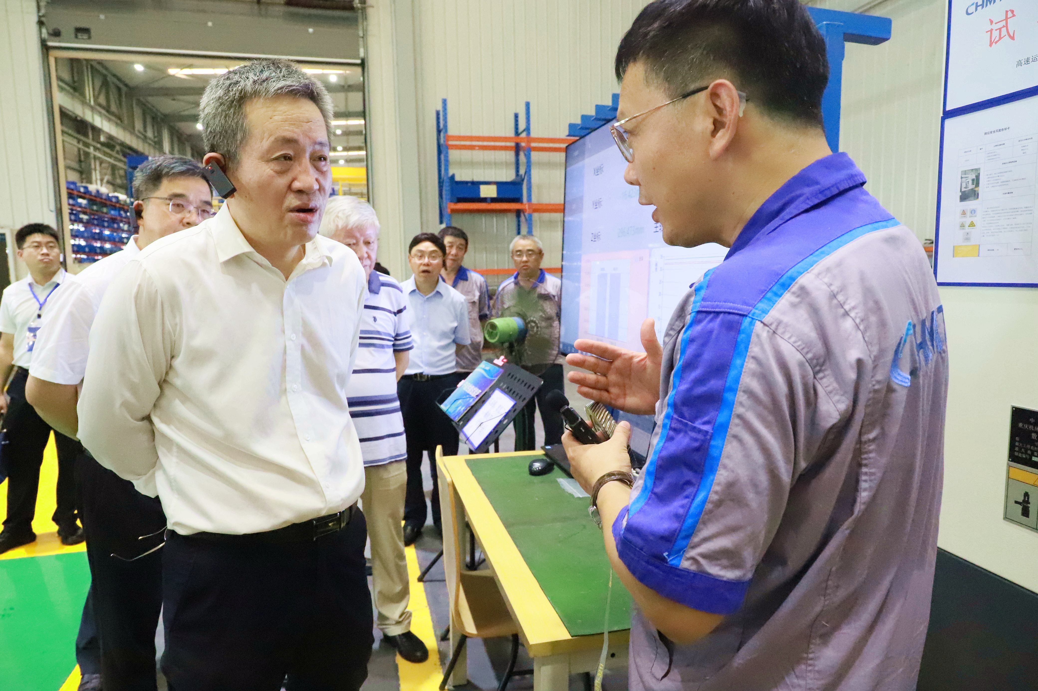 李仲平、谢建新、吴锋院士专家一行走访考察了企业生产现场及科研试验场地,听取了公司发展历程、技术沉淀与企业底蕴、产业方向、技术创新、科研项目等企业情况汇报,并详细了解了重庆机床在工业母机、半导体加工设备和光伏成套设备等战略新兴产业的研发情况以及公司技术创新工作中遇到的问题。同时,刘董事长还向院士专家一行汇报了重庆机床近年来就机床制造领域对材料的需求和面临的难题,充分利用了产业链上下游企业和高校等优势团队,通过深度的“产学研用”合作,开展了机床关键零部件材料应用等关键技术研究工作。